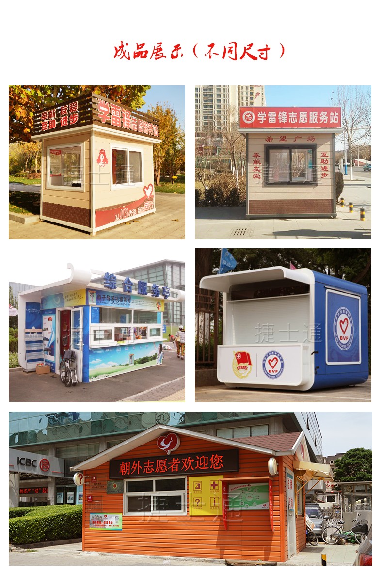 天津捷士通便民志愿服務(wù)亭系列,便民志愿服務(wù)亭能方便市民,進(jìn)行交通指路咨詢,城市治安維護(hù),街頭售貨及書報(bào)等;便民服務(wù)亭的啟用保證市民及外來(lái)游客能得到zui大的方便及城市貼心的服務(wù);配置有工作臺(tái)、柜子,顯示屏,網(wǎng)絡(luò),監(jiān)控,空調(diào)等;可為市民提供設(shè)施有雨傘,醫(yī)藥箱,嬰兒車,打氣筒,代繳水電費(fèi)及代收快件,飲水機(jī)等。;便民服務(wù)亭是一個(gè)城市對(duì)外的窗口,也是一個(gè)城市的名片。常規(guī)案例尺寸:長(zhǎng)3.0米,寬2.5米,高2.9米,其他尺寸都是可以定制的。聯(lián)系電話:15822882616,公司網(wǎng)址:m.thefreelancecrew.com。