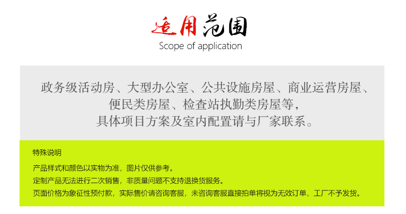 | 類型 | 活動房 | 顏色 | 可定做 | 運輸方式 | 公路運輸 |
