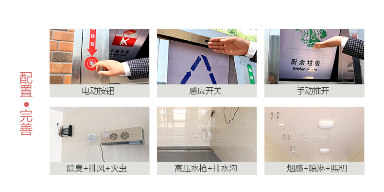垃圾房內部的其他設施:超聲波驅鼠設備、蚊蠅誘捕設備、溫感干粉滅火器。