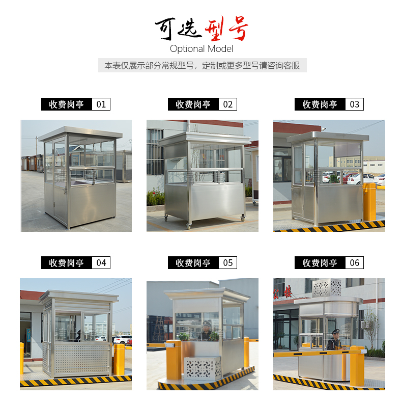 在選擇不銹鋼收費崗?fù)さ臅r候,首先就是看看自己的工程是不是適合不銹鋼的收費崗?fù)?,還是選用鍍鋅板氟碳漆的收費崗?fù)ぃ驗椴讳P鋼的收費崗?fù)ざ际窃珵橹?,鍍鋅板氟碳的一般是多色為主。