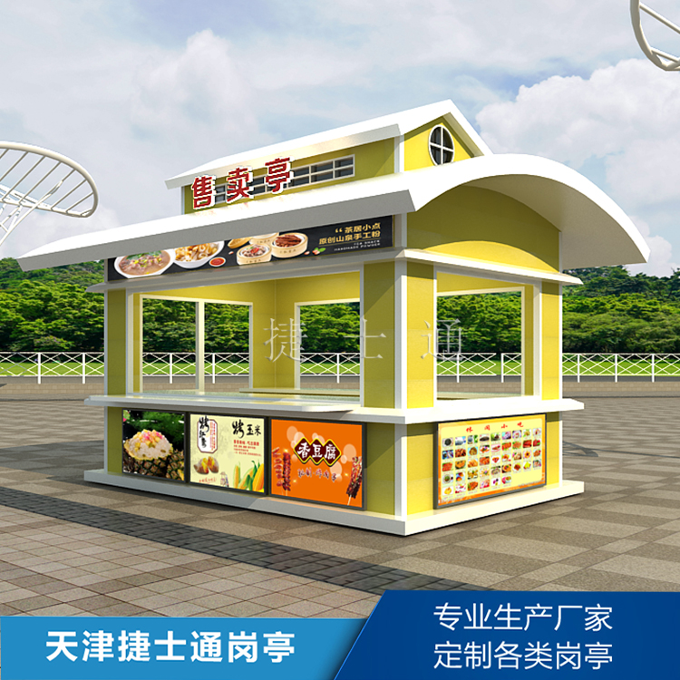 小巧玲瓏: 售貨亭不需要太大,而且較 好是小巧玲瓏的設(shè)計,以適應(yīng)整個游樂場的比例和主題。設(shè)計簡單、實用的售貨亭,使得游客可以方便快捷地購買小食品、水、飲料等小吃。