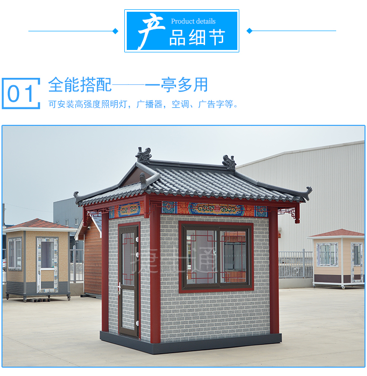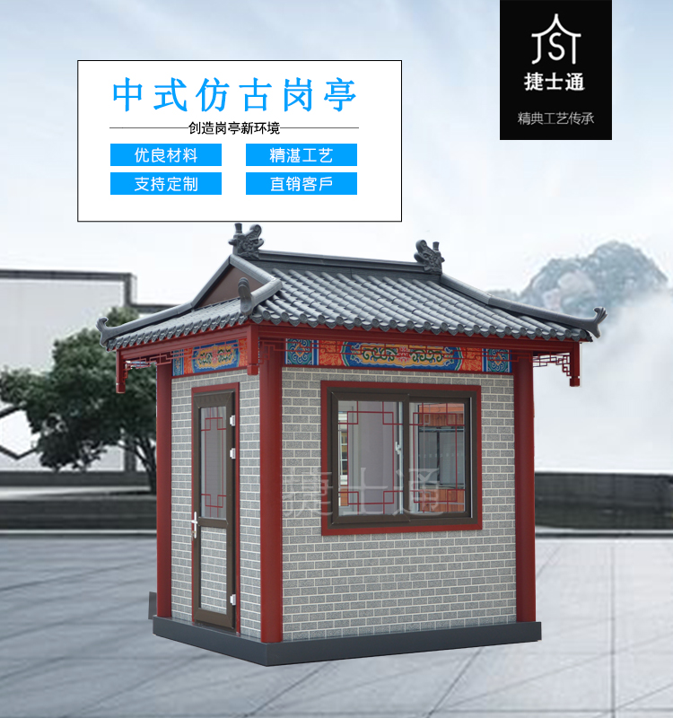 特有的造型,仿古的花紋,創(chuàng)意的窗飾,與古建筑恰到好處的融合,仿古的景區(qū)、仿古的公園、仿古的景點,保安崗?fù)?、售票亭、休息亭均可采用此類風(fēng)格,而且在設(shè)計的時候,尺寸均可定制!?。。∵\輸怎么解決?捷士通廠家和全國的物流均有合作,所以只要您在中國,均可運輸?shù)剑。?br />